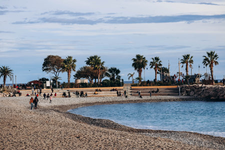 Menton, France - 6 January, 2024: Evening view of the city of Menton and its coastal area