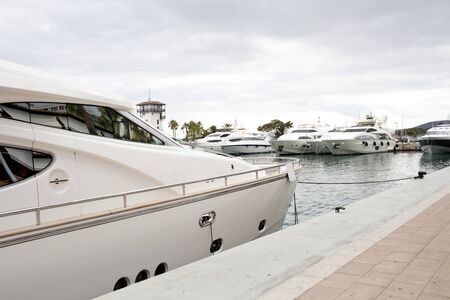 docked modern and white yachts in mediterranean sea