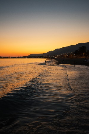 Beach View of the evening beach of Marbella. Costa del Sol, Andalusia, Spain. Picture taken? 3 March 2019.