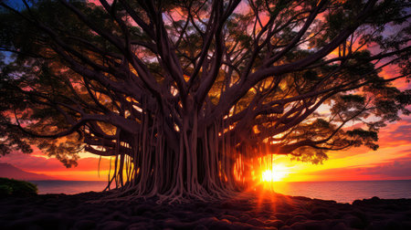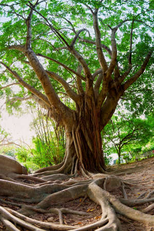 Colorful Banyan Tree Ficus Urostigma Waikiki Honolulu Hawaii Banyan is a giant fig tree Originally from India can live more than 500 years