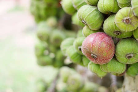 Healthy figs, purple and green figs on a fig tree in a farmer's organic garden.