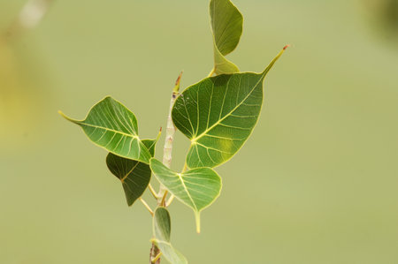 Close up of Ficus religiosa leaves in the nature.