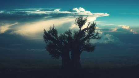 Beautiful landscape with a lonely tree in a field