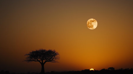 Majestic sunset with a full moon casting a tranquil ambiance over the landscape