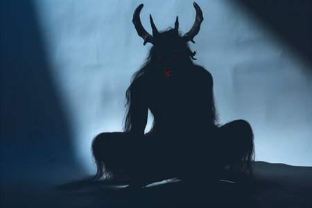 Horned Demon in Shadows with Menacing Gaze