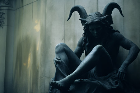 a statue of a man with horns sitting on the ground