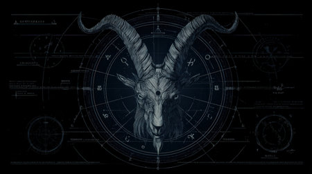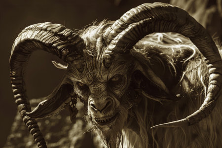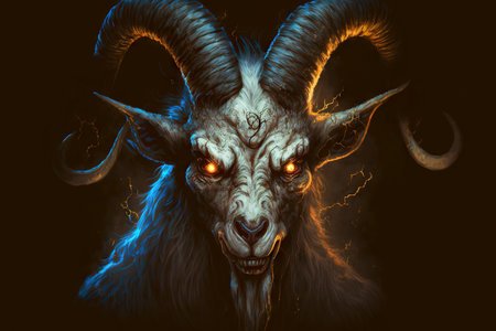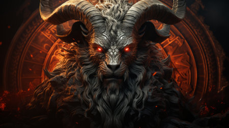 Mystical embodiment of evil in form of goat with horns and evil eye
