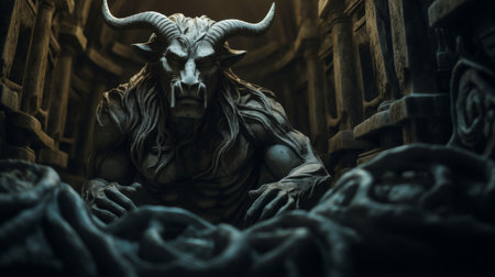 mythical Greek creature the Minotaur lurking in labyrinth