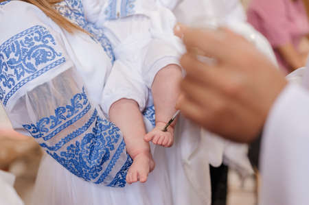 Ukraine, Khmelnitsky 02.10.2022. Infant baptism. Christian rite. Christening