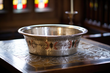 a christian baptismal font with holy water, created with generative ai