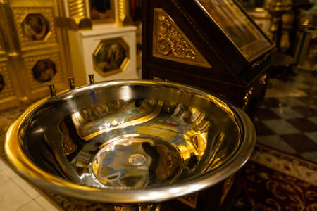 Bowl for Orthodox baptism of children in the temple.