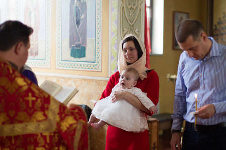 Baptism of a child in the Church. newborn baby baptism. christening a catholic event in the church, the union with god, religious tradition, Christian sacrament grace the laws of God.