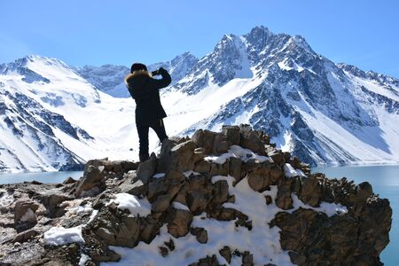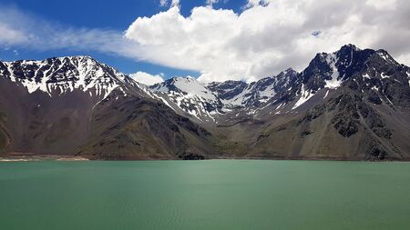 Landscape of mountain snow and lagoon in Santiago, Chile