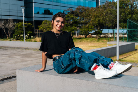 Portrait of a stylish young latin woman enjoying a moment of relaxation in a modern urban environment