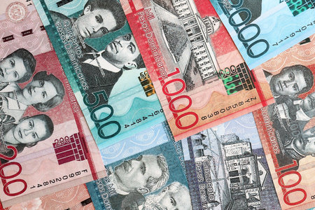 Dominican republic money, peso currency, banknotes of various denominations, financial transactions. Dominican money, the peso as a financial background for your design
