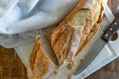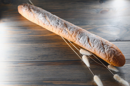 French loaf on rustic background with copy space