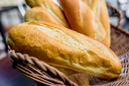 Freshly baked baguettes made by organic wheat flour, sugar, butter and milk that ready for sell.
