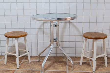 Chairs and table against the wall in home bistro bar