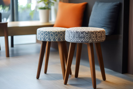 Two upholstered stools with wooden legs enhancing a minimalist home decor