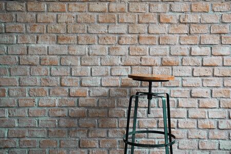 Stool on brick wall background, vintage color tone and soft focus.