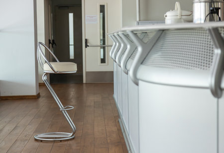 round seat. Seating for visitors. empty space. bar.