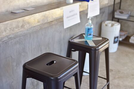 Seating mark for social distance rules in the cafe distance for one seat from other people to protect from Corona Virus