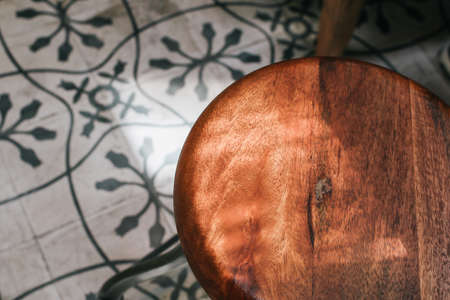 Wooden stool in a room with a window and sunlight in the morning