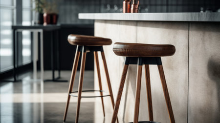 bar stool in a simple and clean brutalist environment captured in an editorial style photograph. shot with a mamiya rz67, the image showcases the zoomed-in details of the stool. ai generated