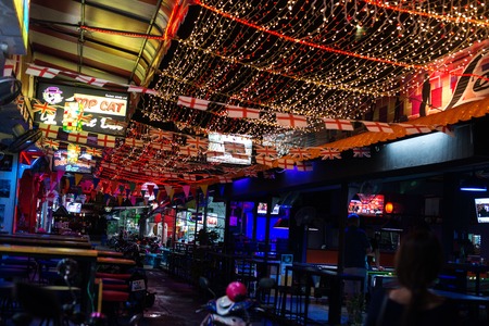 2020 Phuket, Thailand - Dark sexy light atmosphere in bar. High quality photo