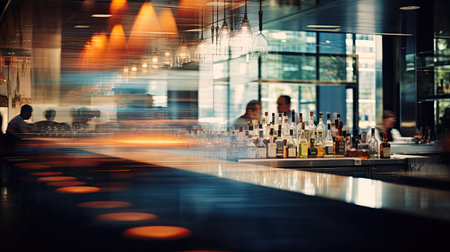 hipster loft modern bar cafe with people blurred motion, vibes and atmosphere