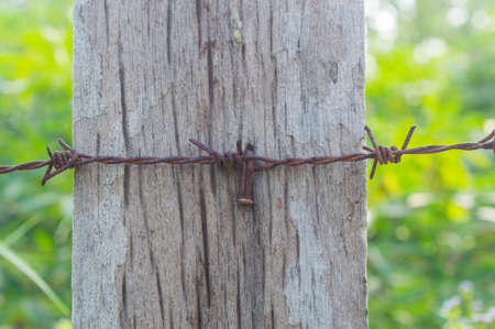 Barbed wire. Barbed wire on fence to feel worrying Concept