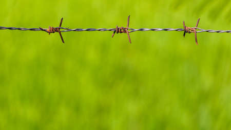 barbed wire in blur grass green nature background