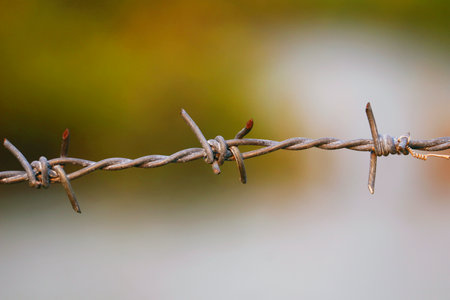 Close up of rusty barbed wire representing immigration challenges, border security, and potential civil unrest in the united states, evoking themes of division, protest, and human rights