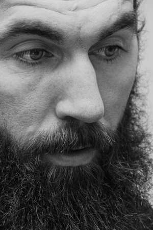 KUPYCHIV, UKRAINE - JANUARY 30, 2009: Close-up portrait of a unidentified bearded man posing at home