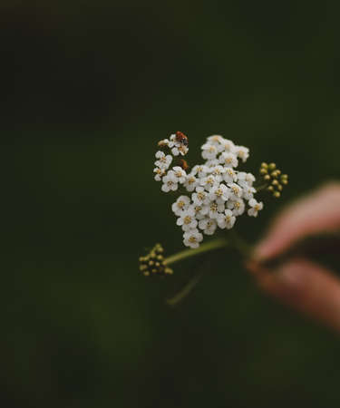 beautiful white small flower on the bush in the garden