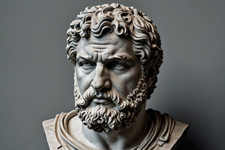 A statue of a large stone head with beard and mustache, AI