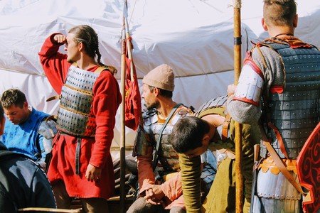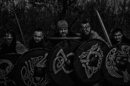 Armed scandinavian warriors are ready to fight