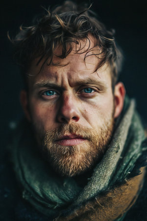 Portrait of a man with a beard and mustache in a scarf