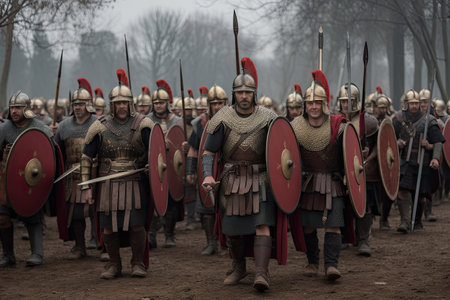 Portrait of roman soldier. Ancient warrior in battle. Generative AI