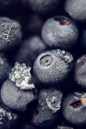 frozen blueberries with frost in the macro