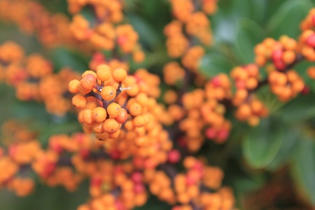 pyracantha, bright beautiful decorative red and orange berries on bushes