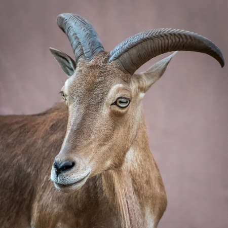 Barbary sheep head (Ammotragus lervia) Isolated on background.