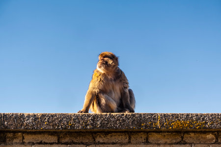 Barbary macaque, Macaca sylvanus, on Gibraltar rock. These monkeys are the only wild primates in Europe.