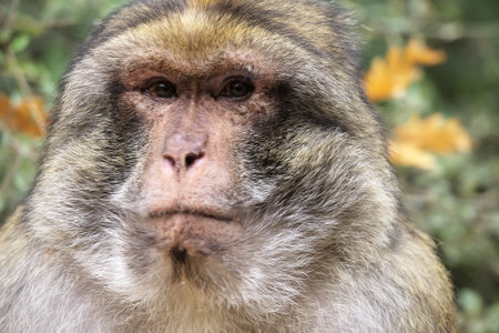 Portrait of a wild female macaque. Macaques are one of the most famous attractions of the British overseas territory