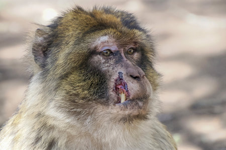Portrait barbary macaque monkey on a stub, Ifrane, Morocco