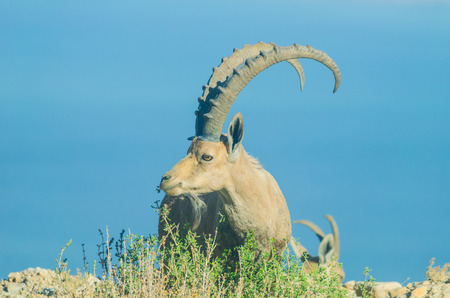 Ibex in the Negev desert in Mitzpe Ramon on the rim of the crater Machtesh Ramon, wildlife in Israel, Ein Gedi