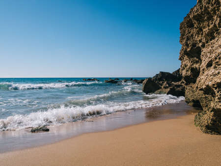 Beautiful turquoise seascape at bolonia dunes in Cadiz, Andalusia