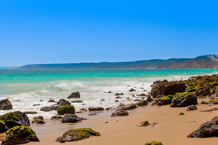 Algarve, Portugal, Europe. Atlantic coast. ocean waves of Atlantic Ocean