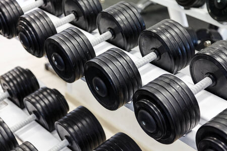 Dumbbells in the gym. Fitness and bodybuilding concept.