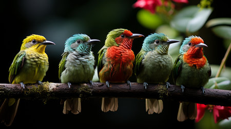 Generative AI : Colorful bird Scarletfaced Liocichla on branch
